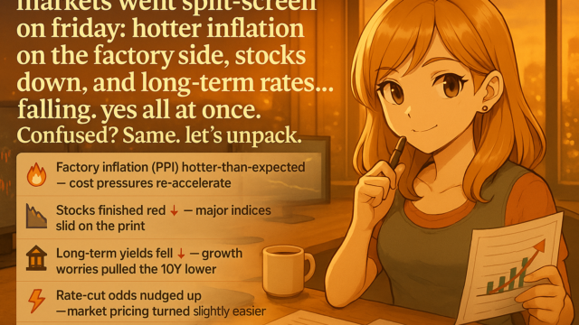 markets went split-screen on friday: hotter inflation on the factory side, stocks down, and long-term rates… falling. ye...